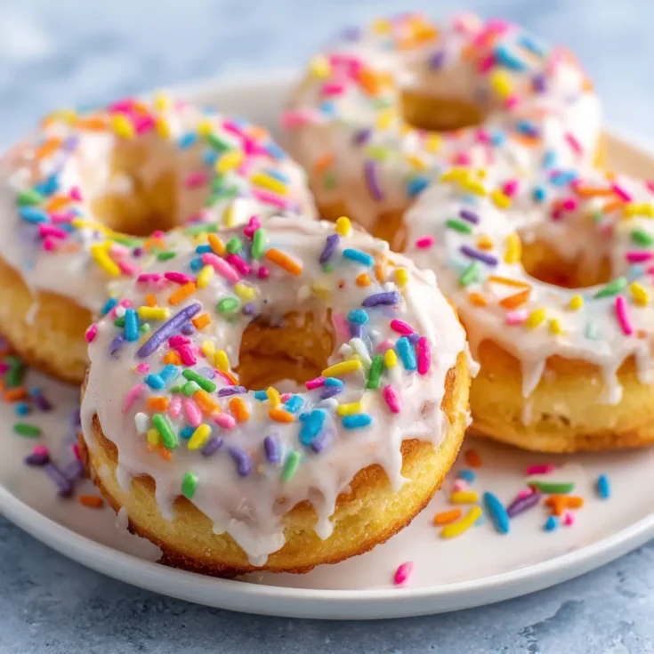 Dip the cooled donuts into the glaze and top with sprinkles if desired. Serve warm and enjoy!