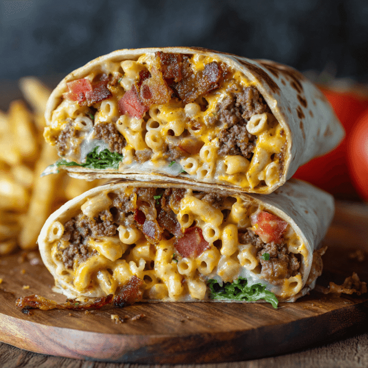 Bacon Macaroni Cheeseburger Wrap is a delicious fusion dish that combines the flavors of a classic cheeseburger, creamy macaroni and cheese, and crispy bacon, all wrapped up in a tortilla. This hearty wrap is perfect for a satisfying lunch or dinner and is sure to please both kids and adults alike!