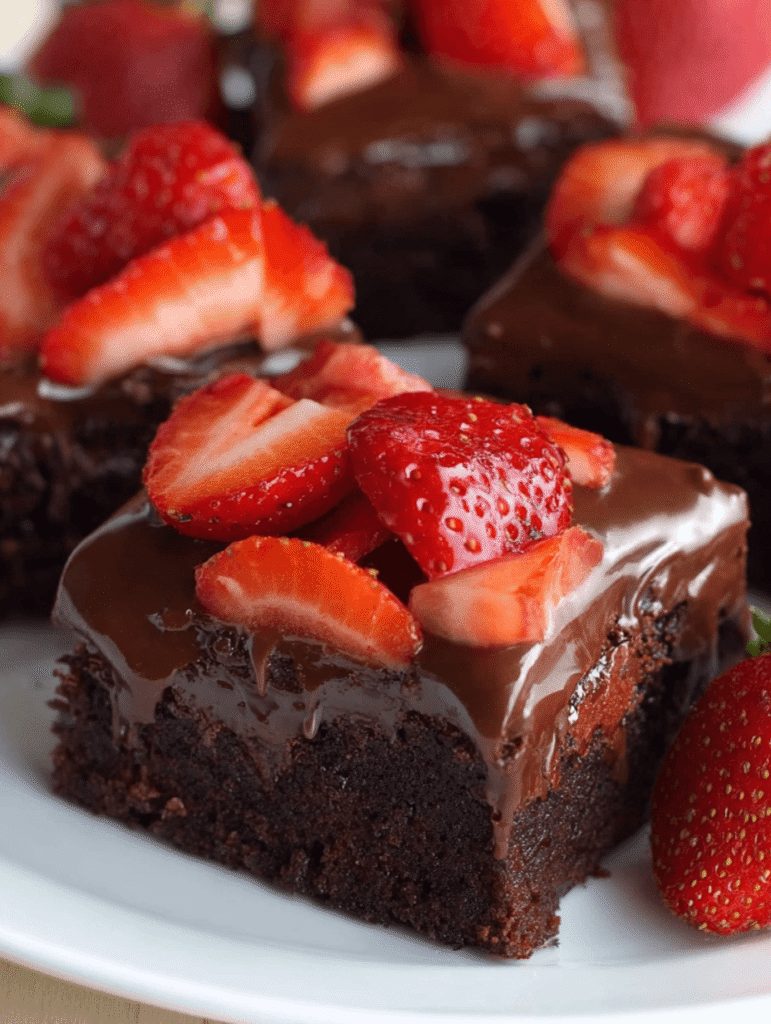 Chocolate Covered Strawberry Brownies combine the rich, fudgy texture of brownies with the sweet and tart flavor of fresh strawberries, all topped with a luscious chocolate ganache. This decadent dessert is perfect for special occasions or as a delightful treat for chocolate lovers.
