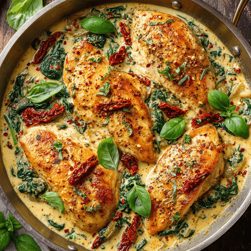 Creamy Tuscan Chicken is a rich and satisfying dish that brings the flavors of Italy to your table. With its creamy sauce and vibrant ingredients, this recipe is sure to become a family favorite. Enjoy this delightful recipe!