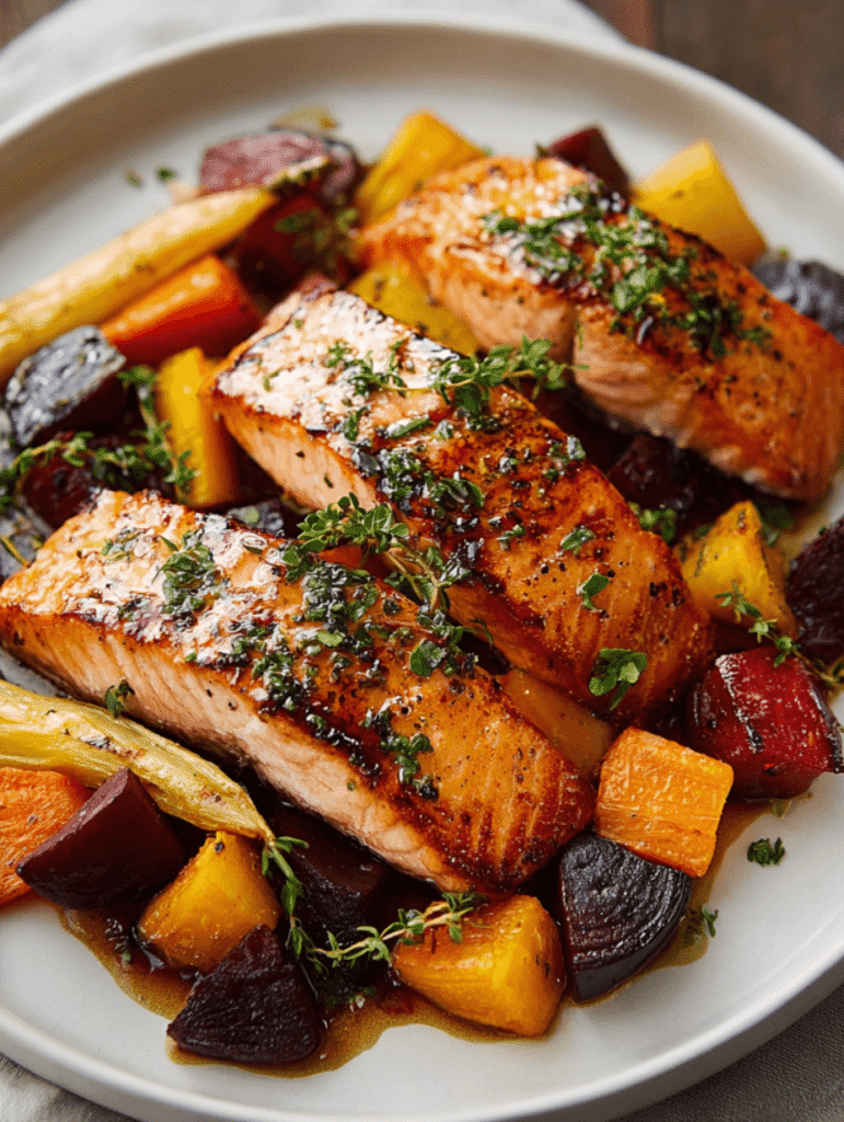 Maple-Glazed Salmon with Roasted Root Vegetables Recipe