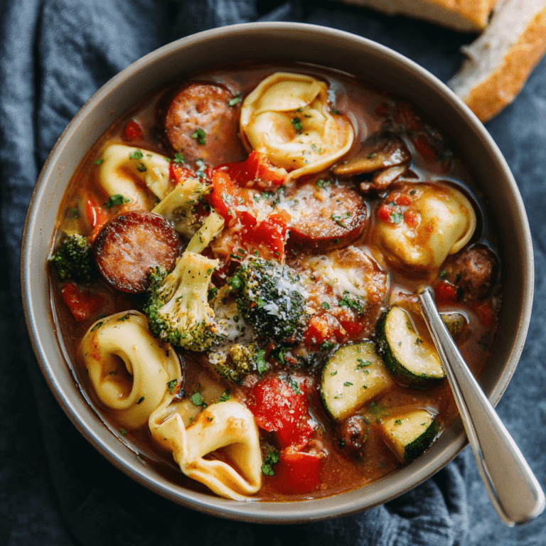 Easy Crockpot Sausage & Tortellini Soup Recipe
