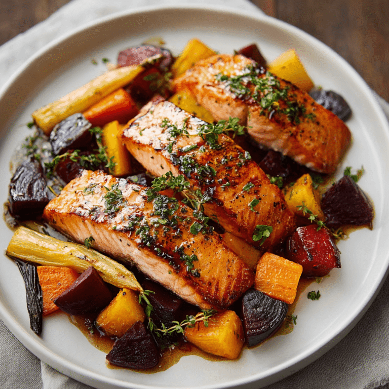 Maple-Glazed Salmon with Roasted Root Vegetables Recipe