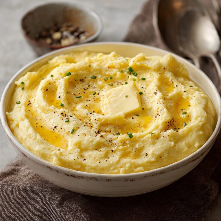 • Garnish: Transfer the cheesy mashed potatoes to a serving dish. Top with the remaining tablespoon of butter and garnish with chopped chives or green onions if desired.